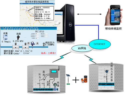為保證供水工作的科學性,依靠現代計算機通信技術和傳感技術實施對供水管道的無人化遠程實時監測,并且能夠自動傳輸到上面各級主管部門,監測輸水管道、城市供水管道的壓力、流量信息;及時發現管網故障,提高維護效率、降低損失,保障輸水、供水質量,達到科學預警,減少成本,提高效率的目的
