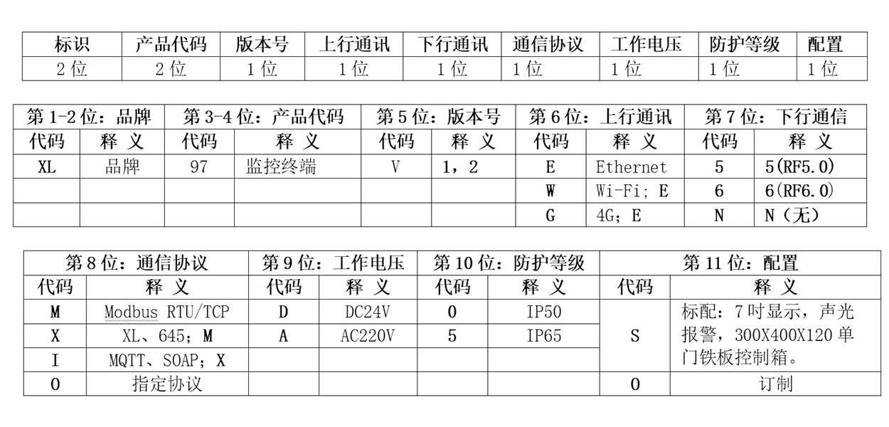 XL97監控終端訂購信息表