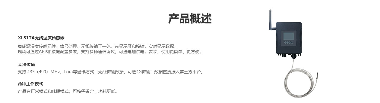XL51TA無線溫度傳感器,集成溫度傳感元件、信號處理、無線傳輸于一體。帶顯示屏和按鍵,實時顯示數據,現場可通過APP和按鍵配置參數,支持多種通信協議,可選電池供電,安裝、使用更簡單、更方便。