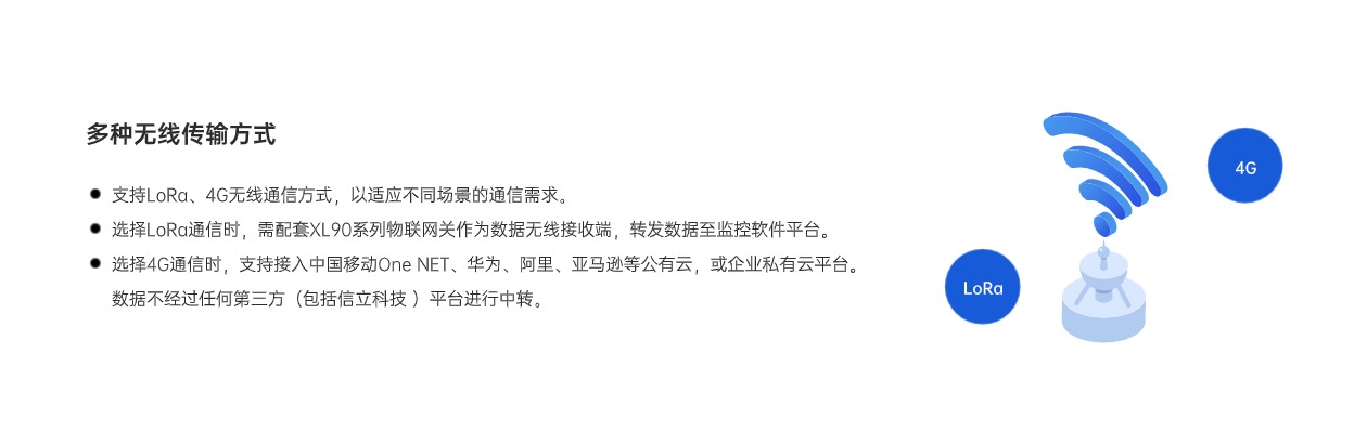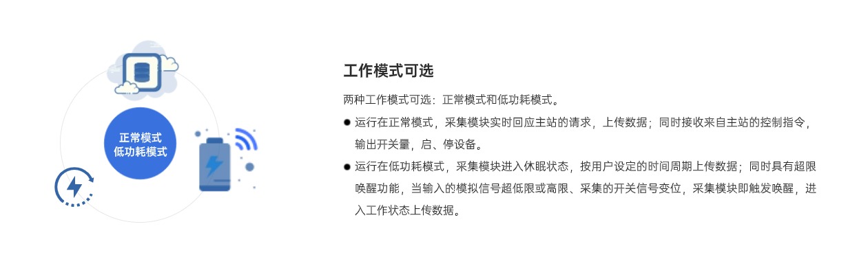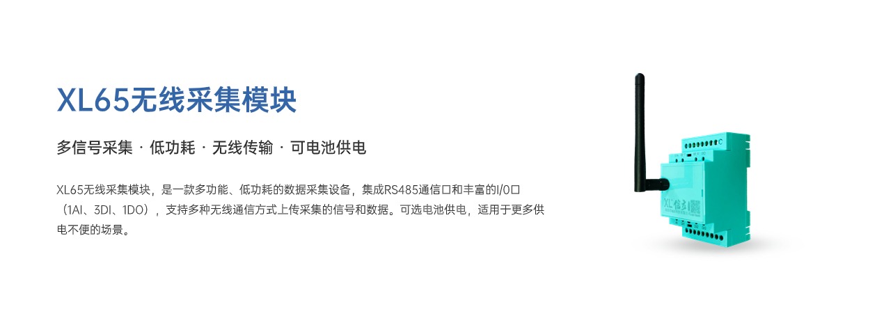 XL65采集模塊,用于監測點分散、數量少、供電不方便的場景。電池供電,變位、超限觸發功能,更適用于變送儀表信號、開關接點信號采集。