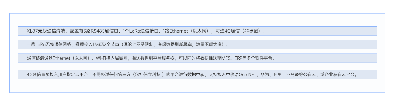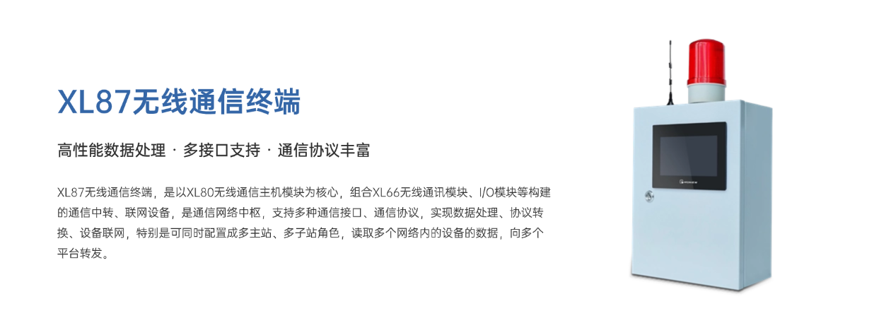 XL87無線通信終端,是以XL80無線通信主機模塊為核心,組合XL66無線通訊模塊、I/O模塊等構建的通信中轉、聯網設備,是通信網絡中樞,支持多種通信接口、通信協議,實現設備聯網,特別是可同時配置成多主站、多子站角色,讀取多個網絡內的設備的數據,向多個平臺轉發。