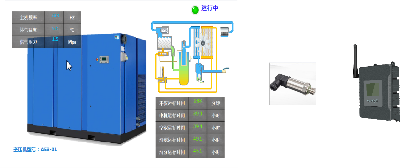 在壓縮氣進氣管,安裝一臺智能壓力傳感器,監測壓縮氣進氣管壓力,通過無線上傳壓力數據