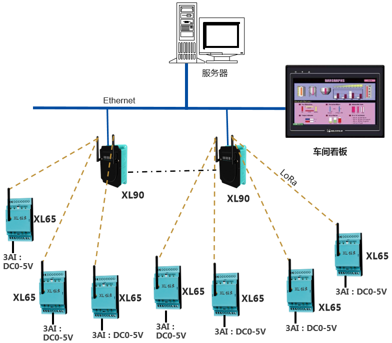 基于XIoT技術(shù)的貼片機(jī)電池電壓數(shù)據(jù)采集系統(tǒng),選擇XL65無線采集裝置,采集貼片機(jī)機(jī)隔上的電池電壓數(shù)據(jù),無線上傳數(shù)據(jù)至XL90物聯(lián)網(wǎng)關(guān)。