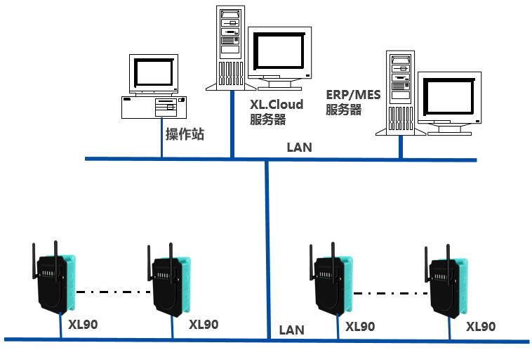 基于XIoT技術(shù)的貼片機(jī)電池電壓數(shù)據(jù)采集系統(tǒng),平臺(tái)由1套XL.Cloud軟件、1臺(tái)監(jiān)控服務(wù)器構(gòu)成;通信網(wǎng)絡(luò)多臺(tái)XL90物聯(lián)網(wǎng)關(guān),及LAN構(gòu)成。