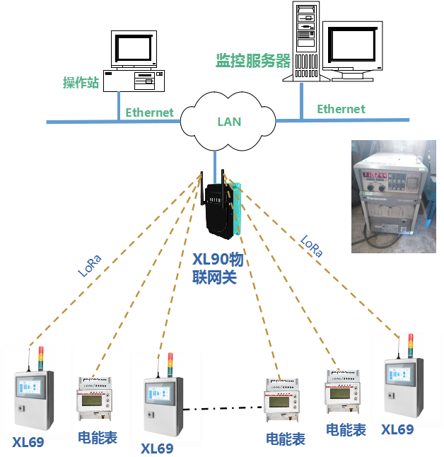 XL69無線采集終端安裝、固定在電焊機上;配互感器等信號采集、輸入模塊,參數按焊機技術參數配。