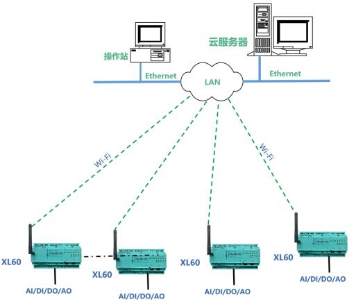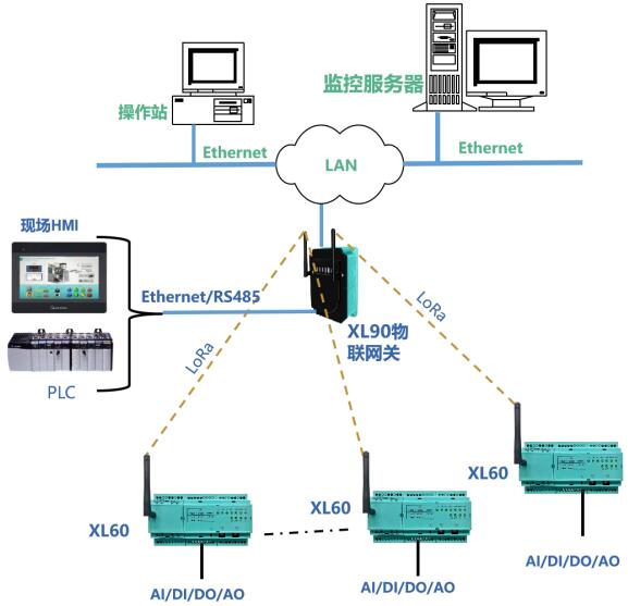 XL90或XL95物聯網關作為無線接收端,進行協議轉換,數據轉發。