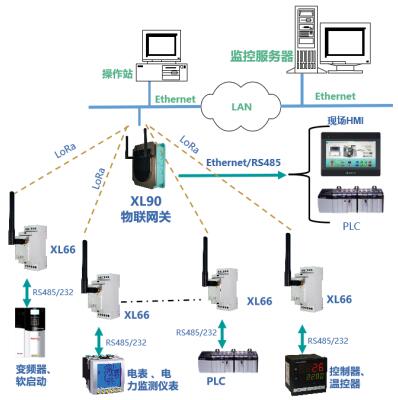 工廠、車間、園區(qū)等場所,有RS485232通信接口的控制器、二次儀表、變送器等,可通過XL66實(shí)現(xiàn)無線聯(lián)網(wǎng)。
