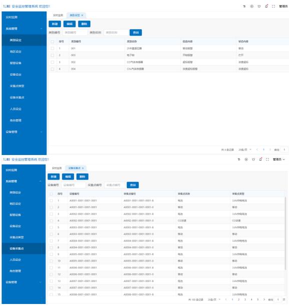 可根據現場實際需求增減設備,對設備編號、類別、位置、采集類型等信息、報警規則和用戶管理等進行自定義設置。