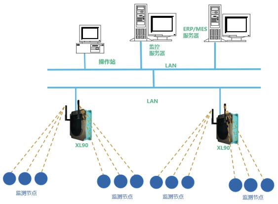 解決方案:XL90物聯(lián)網(wǎng)關(guān)無線讀取監(jiān)測節(jié)點的數(shù)據(jù),進行處理、協(xié)議轉(zhuǎn)換,通過以太網(wǎng)(Ethernet)或Wi-Fi,接入局域網(wǎng)轉(zhuǎn)發(fā)數(shù)據(jù)至MESERPEMS等工廠數(shù)字化平臺。