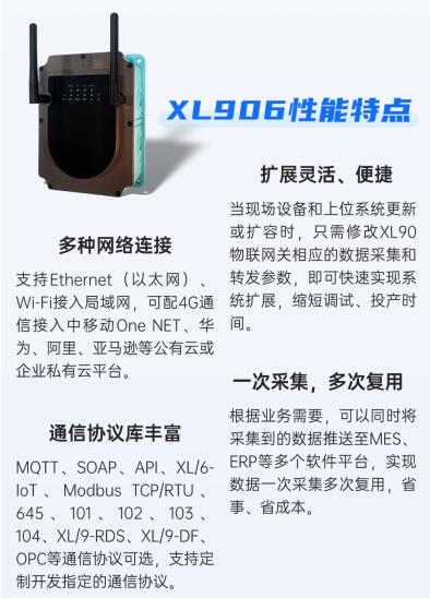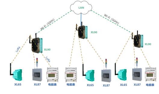 平臺系統的通信網絡,由XL906物聯網關、企業局域網和監控服務器構成,物聯網關可同時將數據推送至多個應用軟件平臺。
