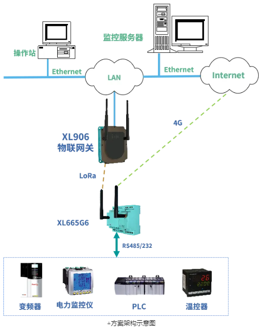 經由XL665多路通信模塊輸出的LoRa信號,可上傳至物聯網關,接入監控軟件平臺;